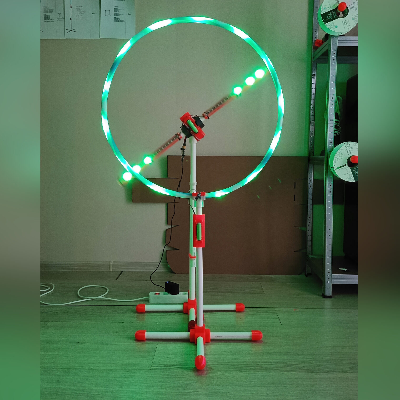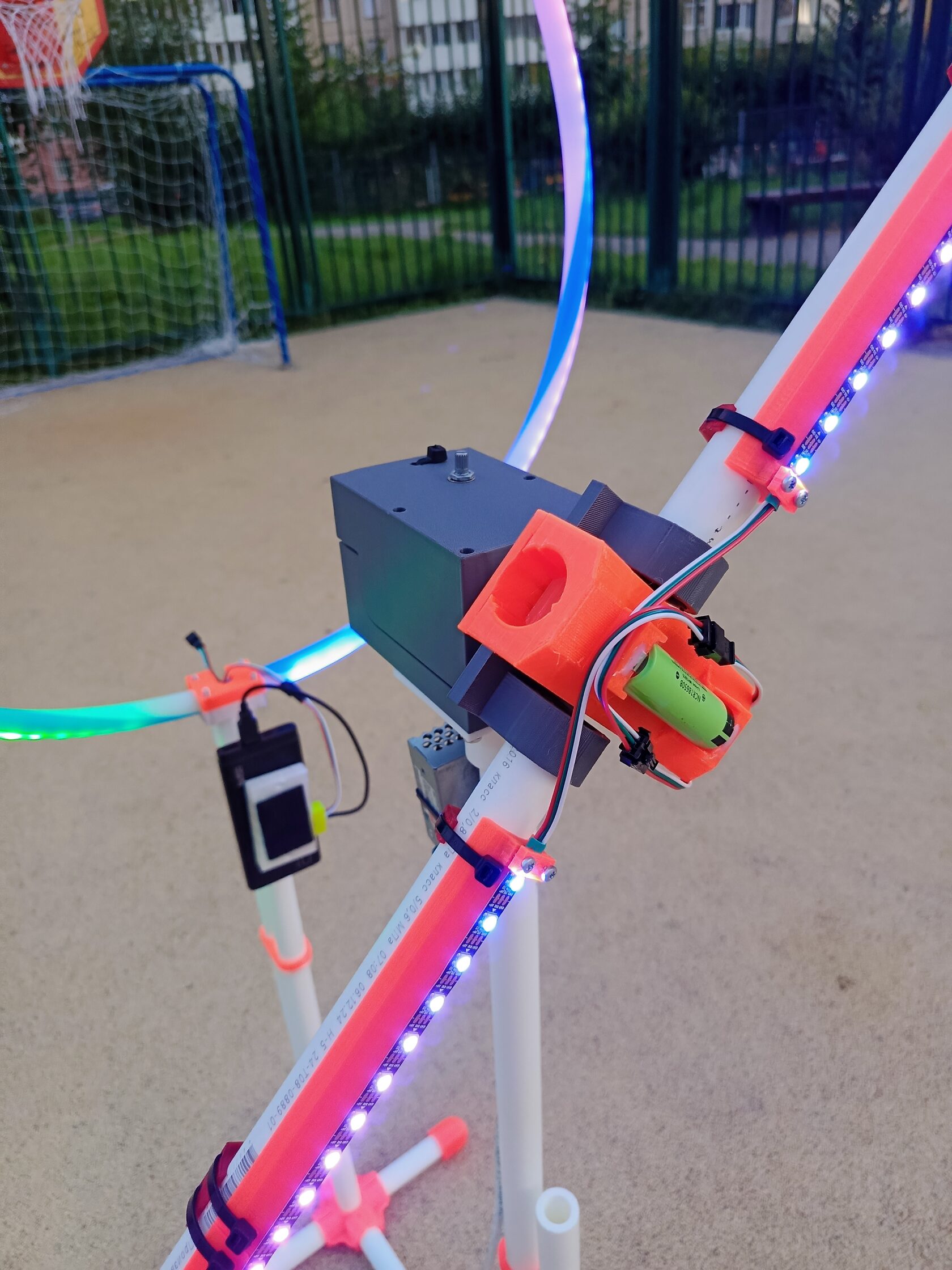 В наборе: крепления, световые трубки, переноска, два беспроводных контроллера с режимами для задания индивидуального цветового режима под каждый пролет.